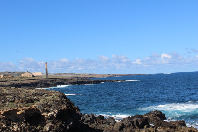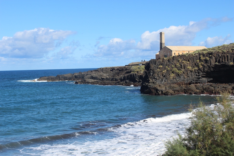 But also, from the beginning of the beach, one can see a small hut called "the house of the telegraph", and beyond, in the middle of the “Cape del Risco de Daute”, the chimney and the stores of what was the last sugar mill of the island, the sugar refining factory that between 1889 and 1890 erected the Manchester society of Lathbury & Company.