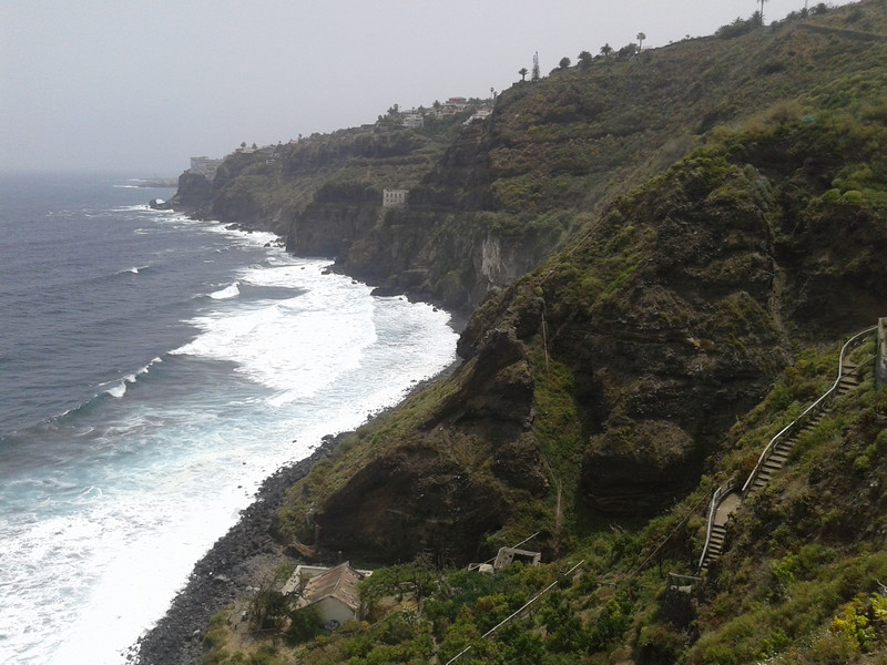 On the other side, towards Puerto de la Cruz, a view of the rugged and untamed north coast of Tenerife, with the Gordejuela house, old water elevator built by the Hamilton´s, as romantic stamp in the distance.