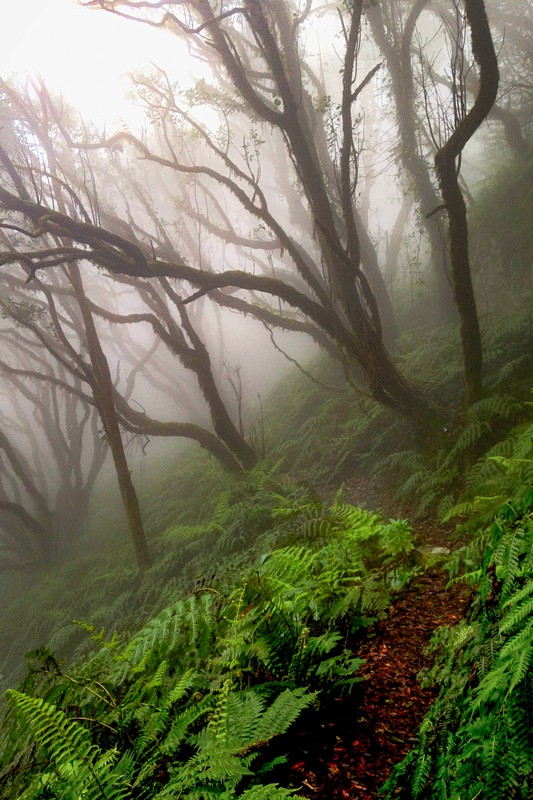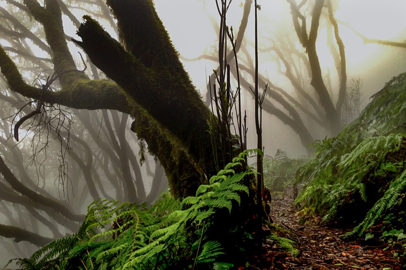 A escasos metros de la seca vertiente sur de Anaga, culminando este viejo macizo nororiental de Tenerife, existe un espacio dominado por la humedad, por la nube permanente, por la lluvia horizontal, por el musgo, los helechos y un frondosísimo bosque terciario, único en su género, profundamente macaronésico al que denominamos: Laurisilva.