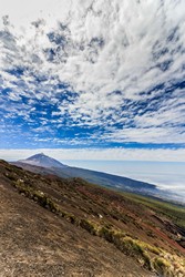 No hay palabras para describir su inmensa belleza, su altivez, sus vertiginosos desniveles, su colosal irrupción desde el mar, sus polifacéticas caras, sus acusados contrastes de color, sus blancos invernales, sus pardos estíos, sus mostazas, sus tonos de beige, sus rojos férricos, sus azules sulfurosos, sus coladas negras repletas de obsidiana, sus lavas mansas y cordadas, o sus más frecuentes pétreas lavas salvajes…Todo el Teide respira a paisaje de otro mundo, paisaje de ciencia ficción, a la vez apacible y tormentoso.