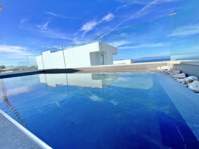 Una nueva villa situada en la solicitada comunidad de 'Insigne Luxury Villas' Rocabella en la ciudad costera de Callao Salvaje. La villa tiene muchas características que incluyen excelentes vistas al mar, una piscina privada y un ascensor. En la planta principal hay un vestíbulo de recepción, el dormitorio principal con baño en suite y vestidor, y otros dos dormitorios, ambos con baño en suite. En la planta superior hay una elegante cocina abierta totalmente amueblada y equipada junto con una sala de estar y un baño. en la planta baja hay un gran sótano que consta de una sala multifuncional (gimnasio, sala de juegos, etc.), un aseo y un trastero. Una villa moderna y elegante situada a sólo 150 metros del océano y perfectamente situada para todos los servicios locales para la vida diaria, incluidos supermercados, farmacia, playa y transporte público. La ciudad principal de Adeje está a diez minutos en coche y las "luces brillantes" de Playa de Las Américas a 15 minutos en coche.