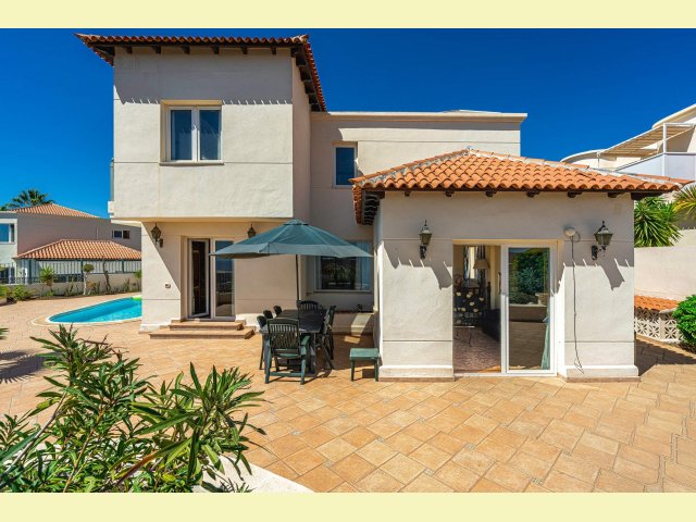 Offering spacious and flexible accommodation, this detached villa is centrally located in the sought-after village of Chayofa, just a few minutes' drive from Los Cristianos. This spacious home occupies one of the largest plots in this sought-after community and boasts numerous features beyond counting; A viewing is essential to fully appreciate the space and location it offers. It comprises: an entrance hall with a sloping ceiling, five bedrooms (two on the ground floor and three upstairs), the master bedroom with a dressing room and a private balcony with sea and mountain views, three bathrooms, a spacious living room with a sloping ceiling and dining area. A fully equipped kitchen with integrated appliances, a wine cellar, a utility room/workshop, and a garage are also available. Outside, there are extensive terraces, a garden, a barbecue area, and a private pool. Furniture is included in the price. Ideal as a residential or holiday home. Excellent legal property for holiday rental with high profitability potential as a tourist rental.