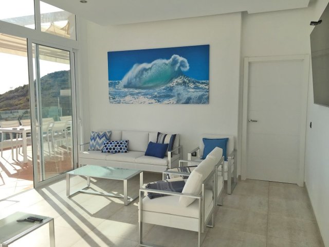 A stunning modern villa for sale in the popular suburb of Roque del Conde, Torviscas Alto. This stylish villa stands on a plot of 835 m2 and is constructed over three floors, with a total interior of 375 m2 with plus 80M2 of garage.There is ample space to enjoy outdoor living with 137 m2 of terraces, top floor balconies and swimming pool area. The villa was built in 2009, and was completely refurbished, fully furnished and re-decorated in 2017. Briefly comprising: seven bedrooms, seven bathrooms, large living room and dining area modern 'state of the art' dining kitchen with integrated appliances. Private swimming pool and panoramic views to the ocean. The villa is fully licensed for short term rental and currently achieves a very high yield return. The buyer will have an option to inherit the rental bookings if required. Viewing highly recommended!