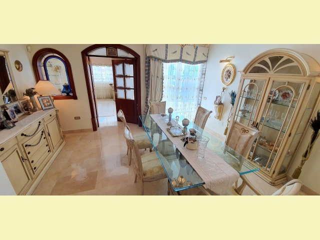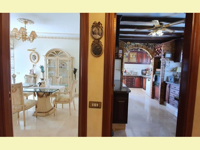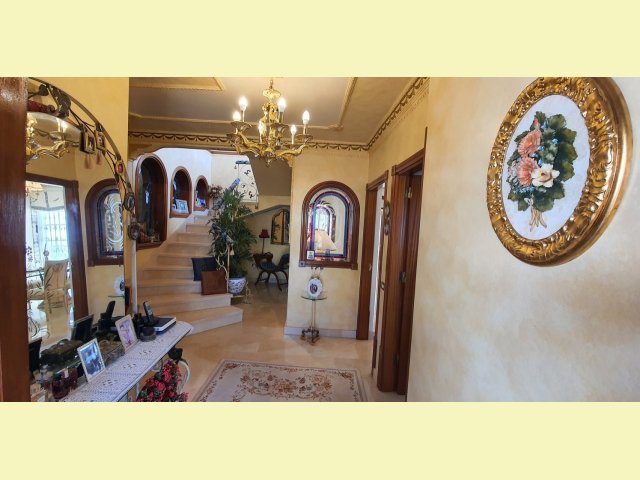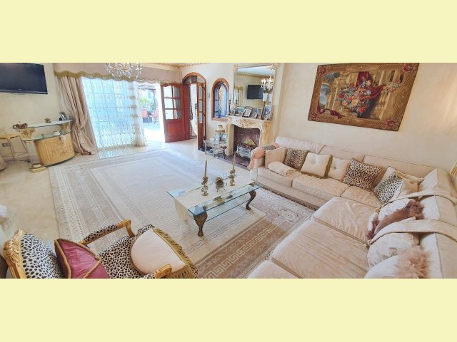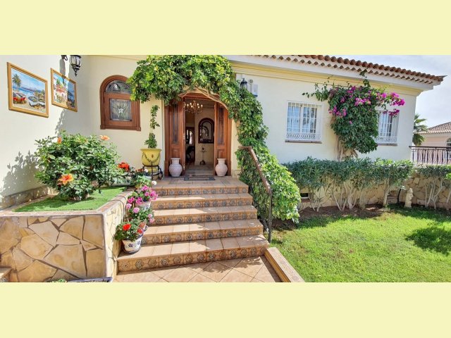Offering spacious (382m2) and flexible living accommodation a luxurious detached villa with a garden and a private heated swimming pool. Briefly comprising: On the ground floor: a reception hall with guest cloakroom with toilet, extensive lounge area, separate dining room, an independent kitchen in natural wood with stone worktops and integrated appliances. From the kitchen and living room, there is access to a terrace with sea views and equipped with a large octagonal table with marble top, a grill with automatic extraction and a summer kitchen. On this floor are two double bedrooms both with en-suite bathrooms (one with a hydro massage bath) and a study (or further bedroom). The bedrooms are accessed via a hallway with feature-stained glass windows. An ornate marble staircase with wrought iron balustrade leads to the first floor where you will find the spacious master bedroom suite with dressing area, a sumptuous bathroom with open shower and a 'wrap around' terrace with excellent panoramic views over the town to the ocean. On the terrace is an ample seating area. On the ground floor: An independent guest apartment with a large living room and two bedrooms, a fully equipped kitchenette and a private garage. With direct access from the street as well as access to the private pool this would be perfect for a granny / teenager annex or perhaps for service personnel. Also, on this floor laundry/utility room, a workshop and a useful storage room measuring 70m2. Outside you will find a heated private pool (7m x 5m) equipped with night lighting and a 'counter current' for swimming. Cultivated private garden with fruit trees, lawn and a rose garden all with automatic irrigation. The villa is accessed via automatic wrought iron gates which lead to a private parking space under a canopy. High specification throughout including air conditioning, marble flooring, automatic sun awnings, video intercom etc. The villa is situated in a quiet cul-de-sac and close to all the local amenities of Callao Salvaje including the sandy beach and sea front.