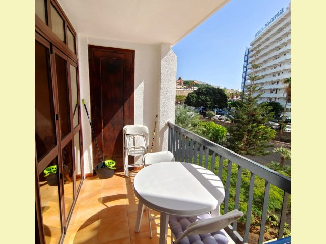 One bedroom apartment in central Playa de Las Americas 260 metres from Playa de El Bobo (beach) and ideally situated for all the amenities including the bus station, shopping centres, promenade, and beaches. The apartment is accessed via a lift and is on the fourth floor facing the exterior of the community with good sea views. Briefly comprising: one bedroom, one bathroom equipped open-plan kitchen, bright living area with access to a terrace with views over the communal gardens and swimming pool to the sea. The living area and bedroom are air conditioned. The community has full resort facilities including a large communal pool, children’s pool, garden areas public parking and lifts. An ideal holiday home in a central location and/or holiday letting investment.