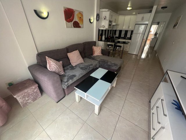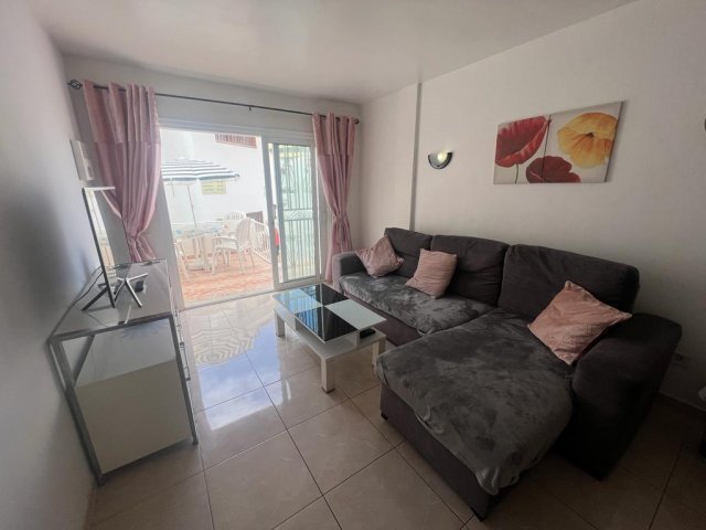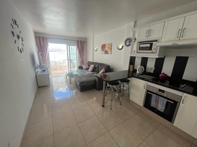 Morfitt Properties Tenerife are pleased to offer for sale a ground floor apartment located in the complex of Ocean Park in the heart of San Eugenio. The apartment offers 2 terraces, one located at the entrance and the other off the lounge with lateral pool views. The interior of the property offers a double bedroom, shower-room, and open plan living with fully fitted and equipped kitchen and lounge with access to the terrace. The complex Ocean Park offers communal swimming pool and is just a short walk to the beach and all amenities. The property is sold furnished and would make a great holiday home.